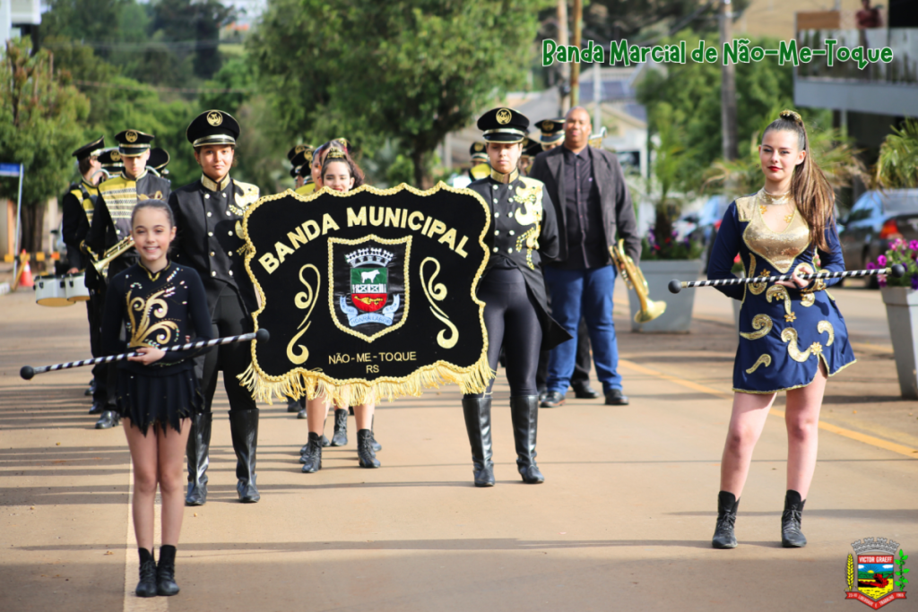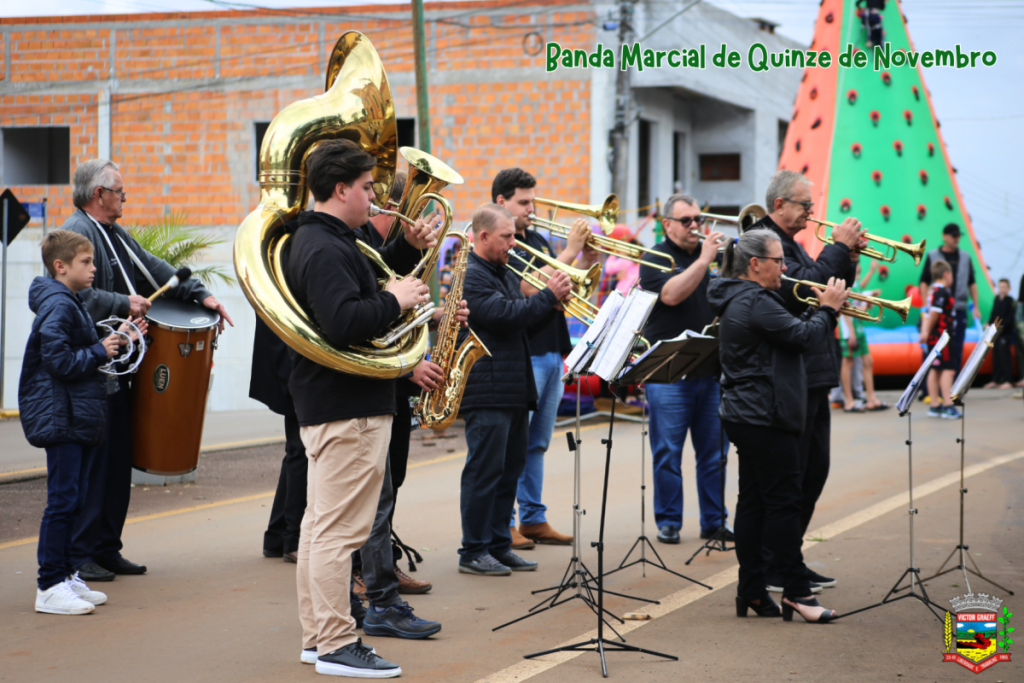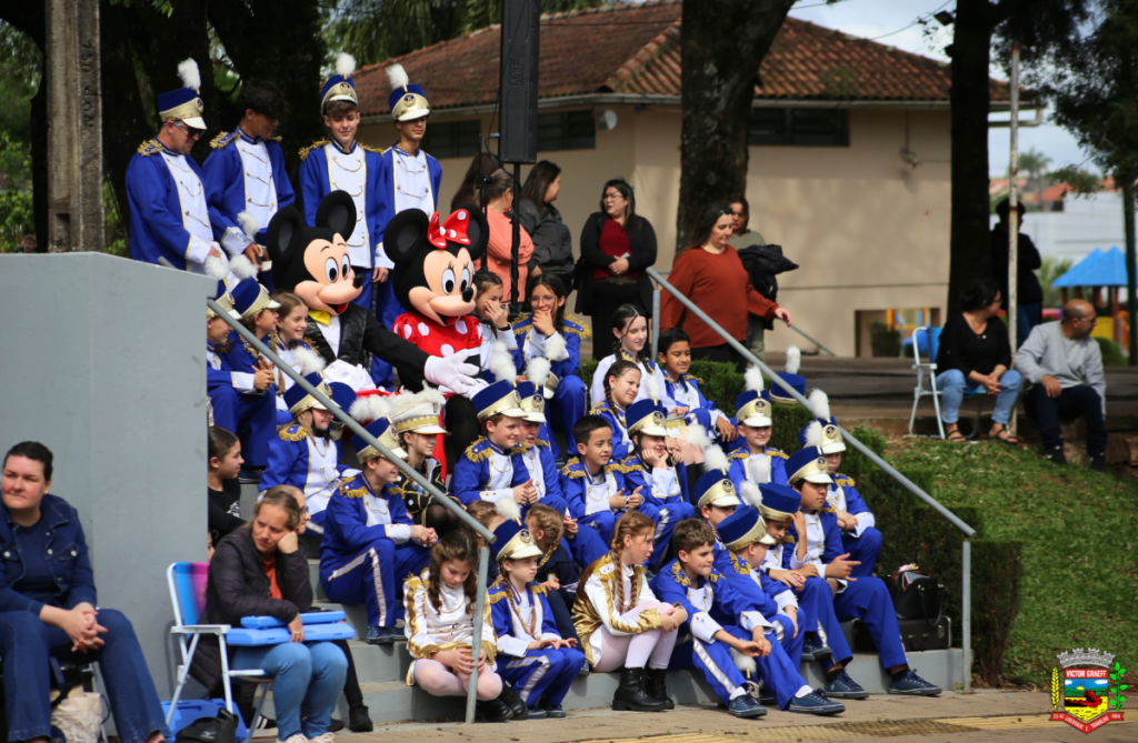 O destaque ficou por conta do 2º Encontro de Bandas Marciais, que encantou o público e antecedeu o emocionante momento do “Parabéns a Victor Graeff” e o corte do bolo de aniversário dos 60 anos.