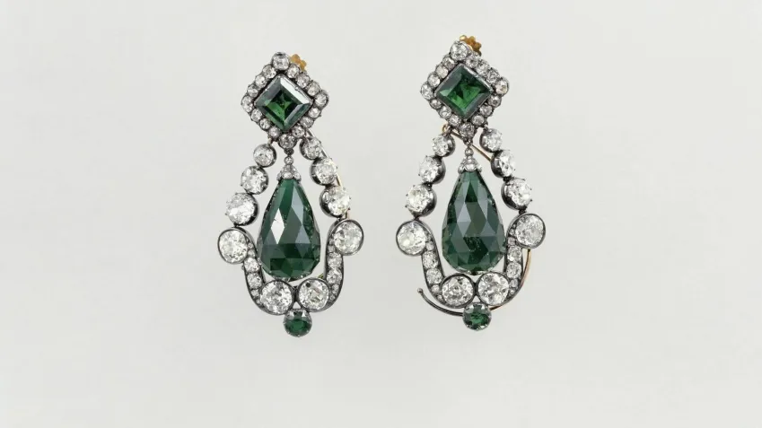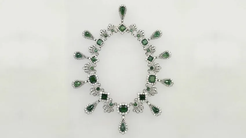 As peças foram criadas pelo joalheiro François-Régnault Nitot e inclui 32 esmeraldas com lapidação complexa e 1.138 diamantes.