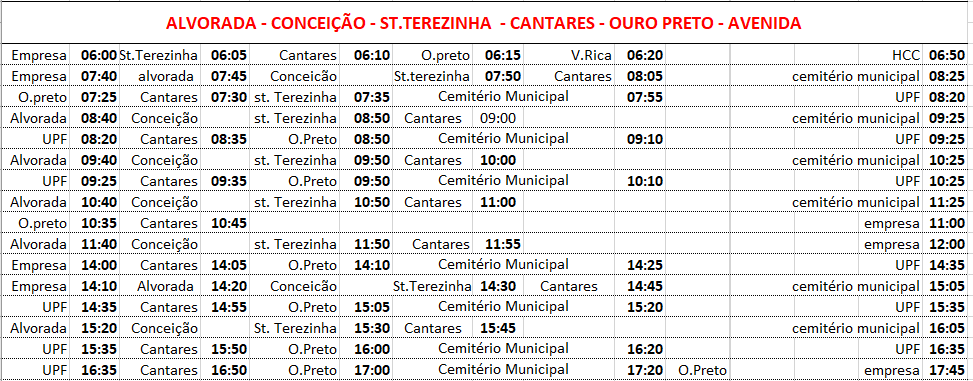 A empresa Glória de Carazinho informou os horários e itinerários de ônibus para o próximo domingo, dia 02 de novembro, Dia de Finados, em direção ao Cemitério Municipal.