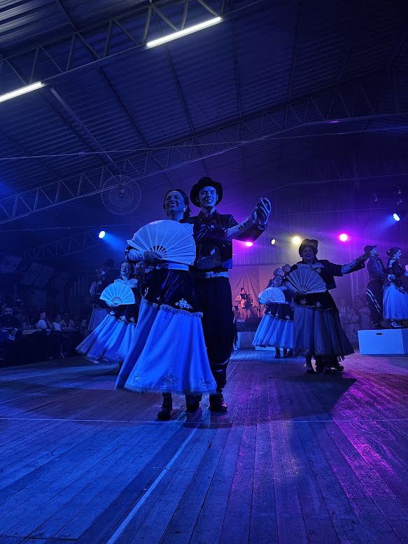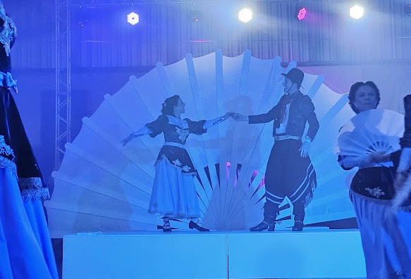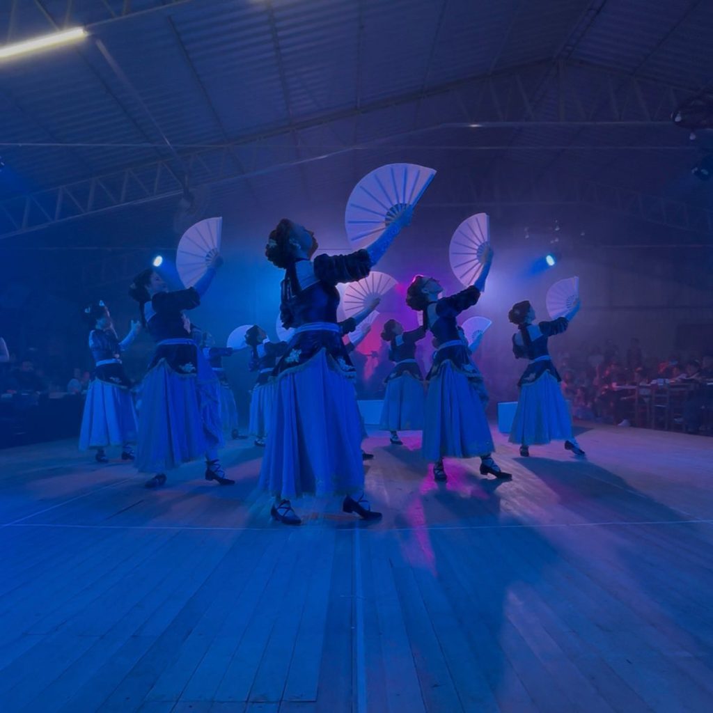 A apresentação do CTG carazinhense traz como destaque a simbologia do leque na indumentária da mulher gaúcha — tema que orienta coreografias, figurinos e narrativa cênica.