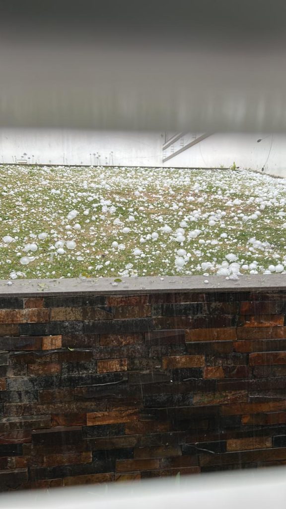 As pedras de gelo atingiram diversas residências e veículos, causando danos e destelhamentos. Vídeos gravados por moradores mostram o tamanho e volume do granizo (assista abaixo). Em alguns casos, as pedras tinham o tamanho de ovos de galinha.