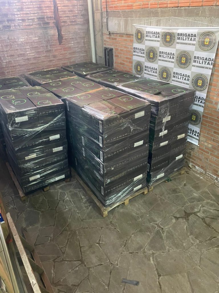 Brigada Militar e PRF apreendem carreta com mais de 114 mil carteiras de cigarros contrabandeados na BR-386
