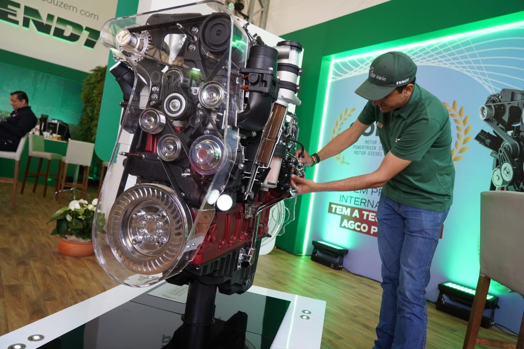 | Além de sensores para todos os fins, buscando garantir maior eficiência no campo, e outras tecnologias que podem trazer retorno imediato ao produtor, a feira é palco de lançamentos que visam o futuro. De olho na transição energética, a fabricante alemã Fendt apresenta de forma inédita na feira o motor AGCO Power CORE 80, homologado para operar com o diesel HVO100 (Óleo Vegetal Hidrohidratado), conhecido como “diesel verde”, originado de óleos vegetais e gordura animal, reduzindo significativamente as emissões de gás carbônico. João Toledo, coordenador de marketing de produto da Fendt, explica que o uso de HVO cresceu significativamente na Europa como uma solução imediata para descarbonizar o transporte, sem a necessidade de modificar motores diesel existentes. No Brasil, a expectativa é de que avanços no uso de combustível renovável aconteçam gradualmente. |